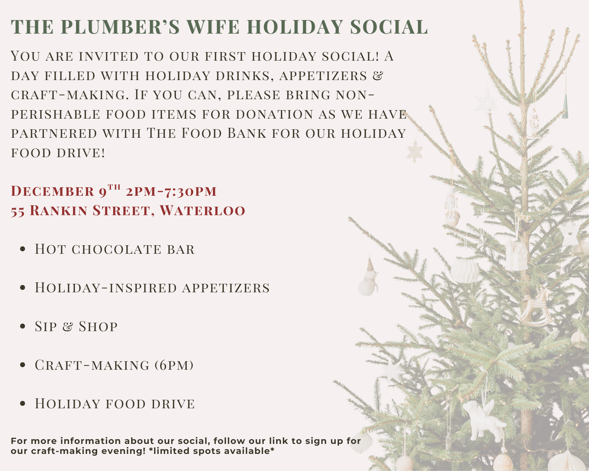 Join us on Tuesday December 9th from 2pm-7:30pm for our first annual holiday social!