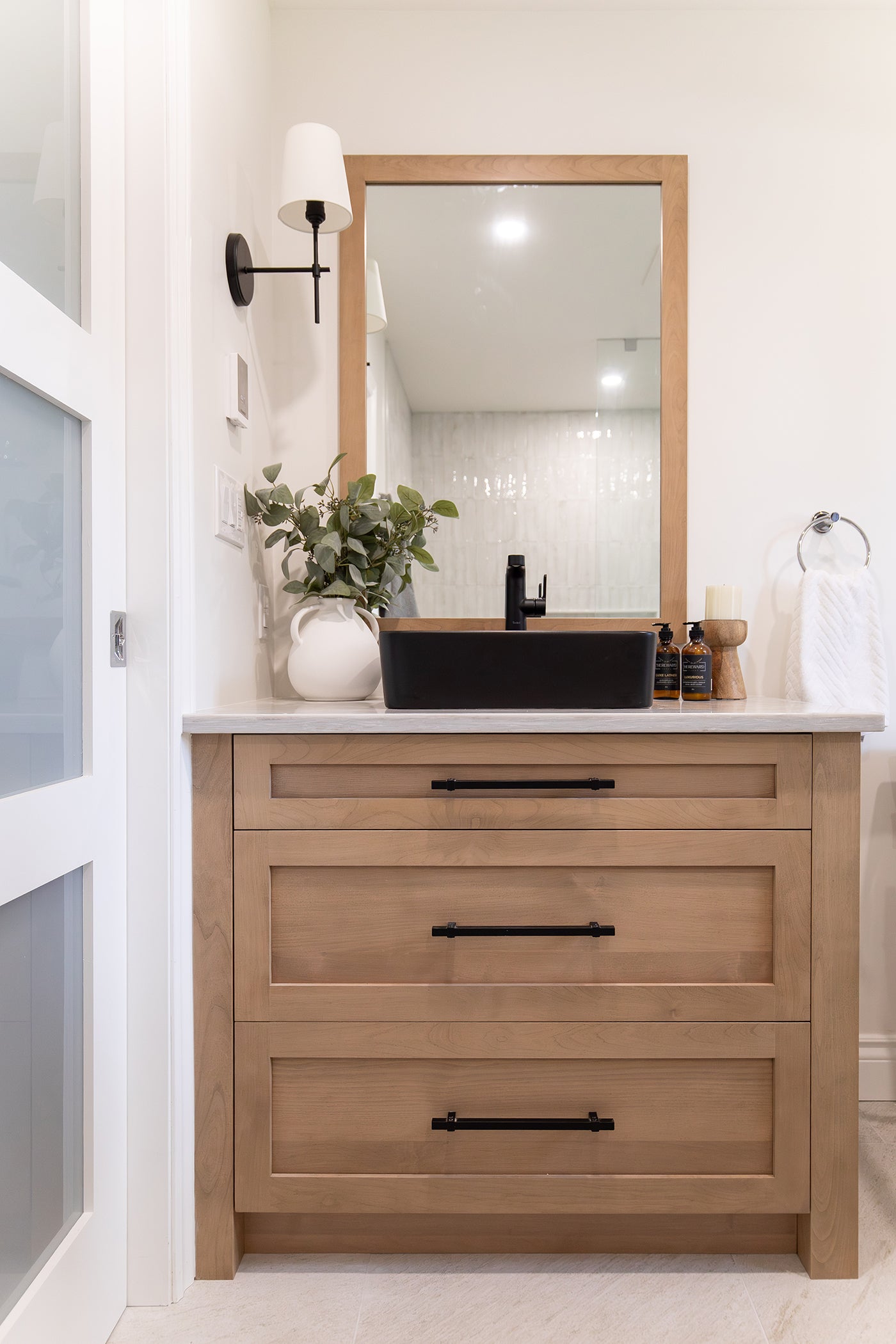 This bathroom form the 90's was is desperate need of a fresh start and more space.. so we said goodbye to a closet and HELLO to a custom shower!